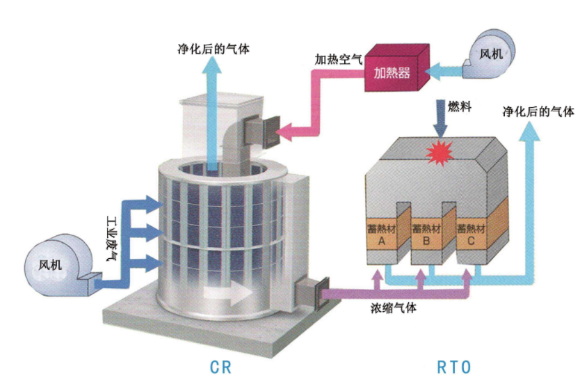 蓄熱式熱力燃燒法同樣采用熱量回收系統(tǒng),回收燃燒后高溫氣體的熱量用于預(yù)熱進(jìn)入系統(tǒng)的廢氣。