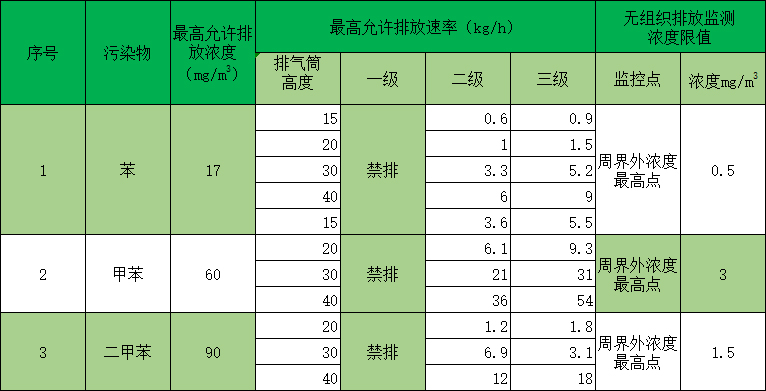 廢氣排放標準參照《大氣污染物綜合排放標準》(GB16297-1996)規(guī)定,廢氣排放標準如下表: